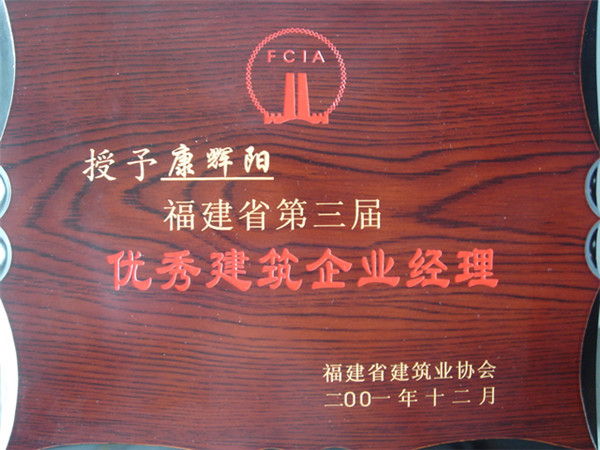 康輝陽(yáng)同志2001年福建省第三屆優(yōu)秀建筑企業(yè)經(jīng)理