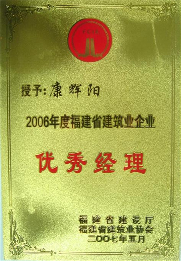 康輝陽同志2006年度福建省建筑業(yè)企業(yè)優(yōu)秀經(jīng)理
