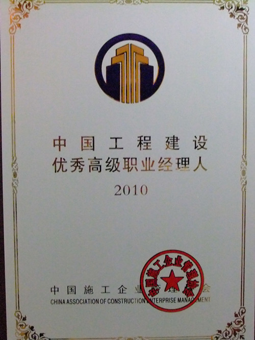 康輝陽同志2010年中國(guó)工程建設(shè)優(yōu)秀高級(jí)職業(yè)經(jīng)理人